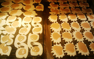 The cookies (the most important part of the meal). I made squirrels, hedgehogs, snails (Terah and William thought they were whales) and acorns. Get the recipe HERE