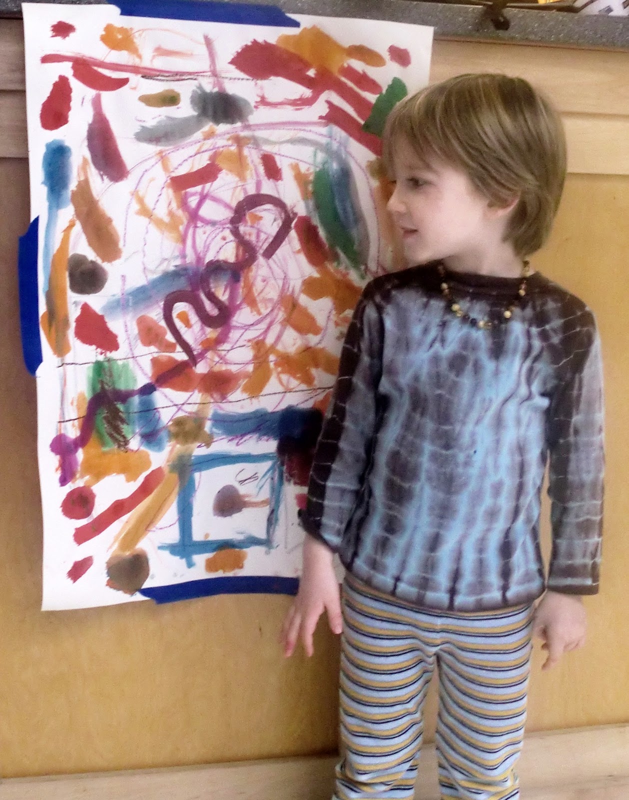 Aldous was infatuated with the dipping. He liked to put the brush on the paint, THEN in the water, then on the paper. We tried to correct it, but he liked the water more than the paint.