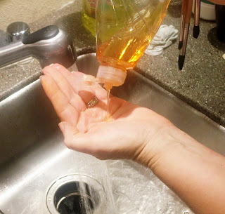 Washing the brushes is easy, too. Put a drop of dish detergent in your hand (I learned this in college!! ha ha!).